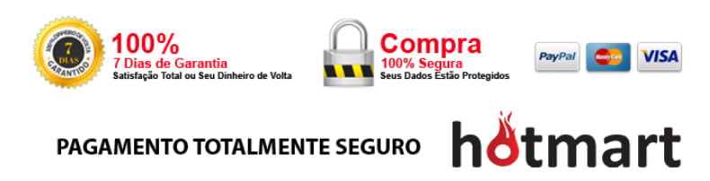 O pagamento pode ser por boleto, cartão de crédito, cartão de débito, PayPal, conta Hotmart, Samsung Pay, PIX e Google Pay.