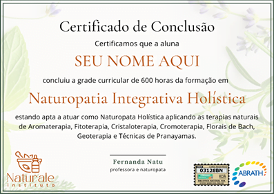 Se você está aqui, é porque sente no coração que deve adentrar neste universo, e já entende o poder imenso da naturopatia! Conhecimento é algo que absolutamente ninguém tira de você. Além disso, mesmo na correria do dia a dia, o curso tem acesso de 2 anos e você pode assistir as aulas em seu tempo: por exemplo, separe 10 minutinhos 1x/por semana para fazer o curso. Você se programa e faz seus próprios horários, sem precisar se apressar, mas ainda assim, sendo guiada pelos módulos para concluir o curso em breve e receber seu merecido certificado.